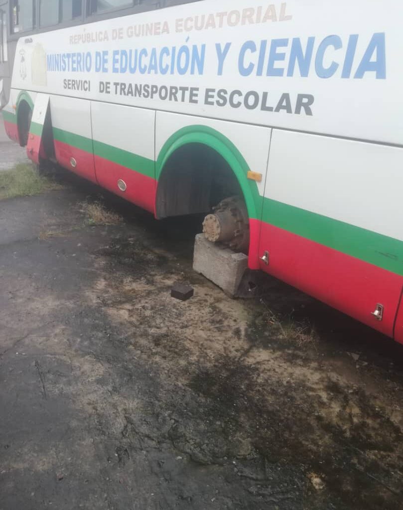 En Bata, la llamada capital económica de Guinea Ecuatorial, varios autobuses oficiales del Ministerio de Educación y Ciencia, destinados al transporte escolar, han sido localizados abandonados detrás del patio trasero de la empresa de seguridad privada Gartol, propiedad del dictador Teodoro Obiang Nguema Mbasogo y gestionada por su hijo Carmelo Nvono Obiang, alias Didi, viceministro de Seguridad Nacional.